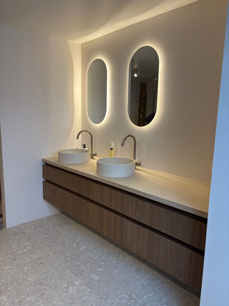 De Badkamerspiegel Fiona 40×80 is vervaardigd uit hoogwaardig glas en heeft een strak, minimalistisch ontwerp zonder omlijsting. De ovale vorm voegt een vleugje elegantie toe en doorbreekt de traditionele rechte lijnen in de badkamer. Dit zorgt voor een zachte en uitnodigende uitstraling die elke ruimte opfleurt.