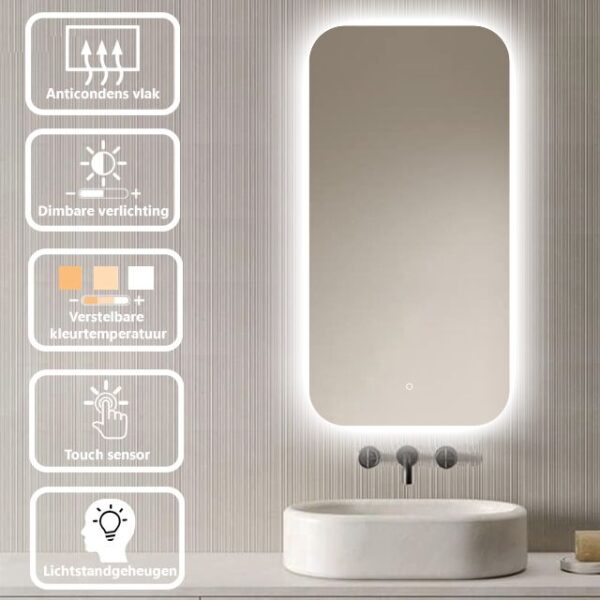 Badkamerspiegel Moderna 50×100 – Strak Design en Verstelbare LED-Verlichting