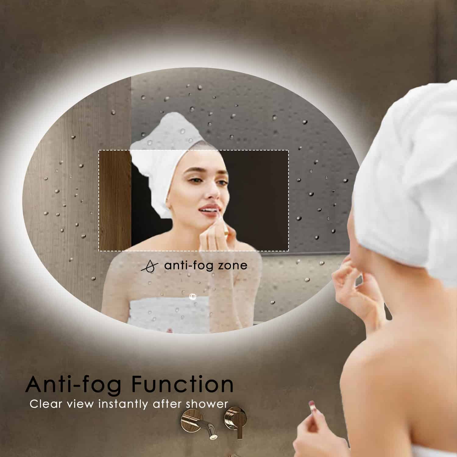 Na een warme douche beslaat het spiegeloppervlak niet dankzij de automatische anti-condensfunctie. Deze schakelt in zodra je de verlichting activeert, zodat je altijd direct een helder spiegelbeeld hebt. Geen handdoeken meer nodig – wel comfort.